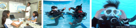 講習日程 | 3日間(学科講習1日、プール/海洋実習2日) 学科講習は年中実施中、海洋実習は6月より実施致します! ※期間外の時期に講習希望の場合はお問い合わせ下さい。 |